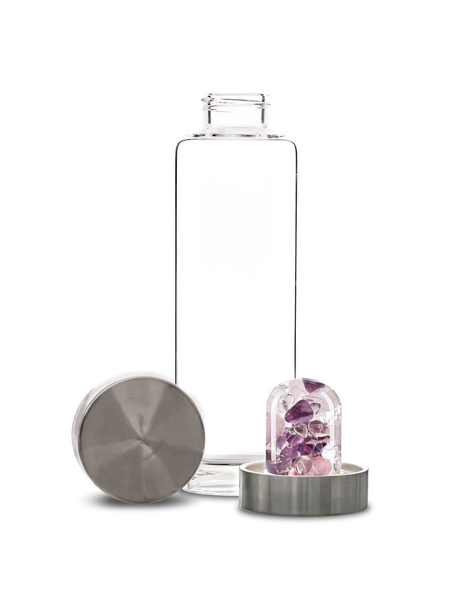 A premium glass bottle with a hand-crafted pod full of a wealth of gems. Enliven your drinking water. Jewelry for water. Good for
